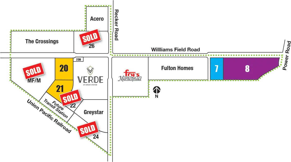 As some of the last remaining development parcels within Gilbert’s popular Cooley Station masterplanned community, these lots represent outstanding opportunities for community retail, commercial office and more. With immediate access to both the Loop 202 Freeway and the MesaGateway Airport, several of these parcels offer outstanding frontage and visibility on Williams Field Road, the major east-west arterial in this area.